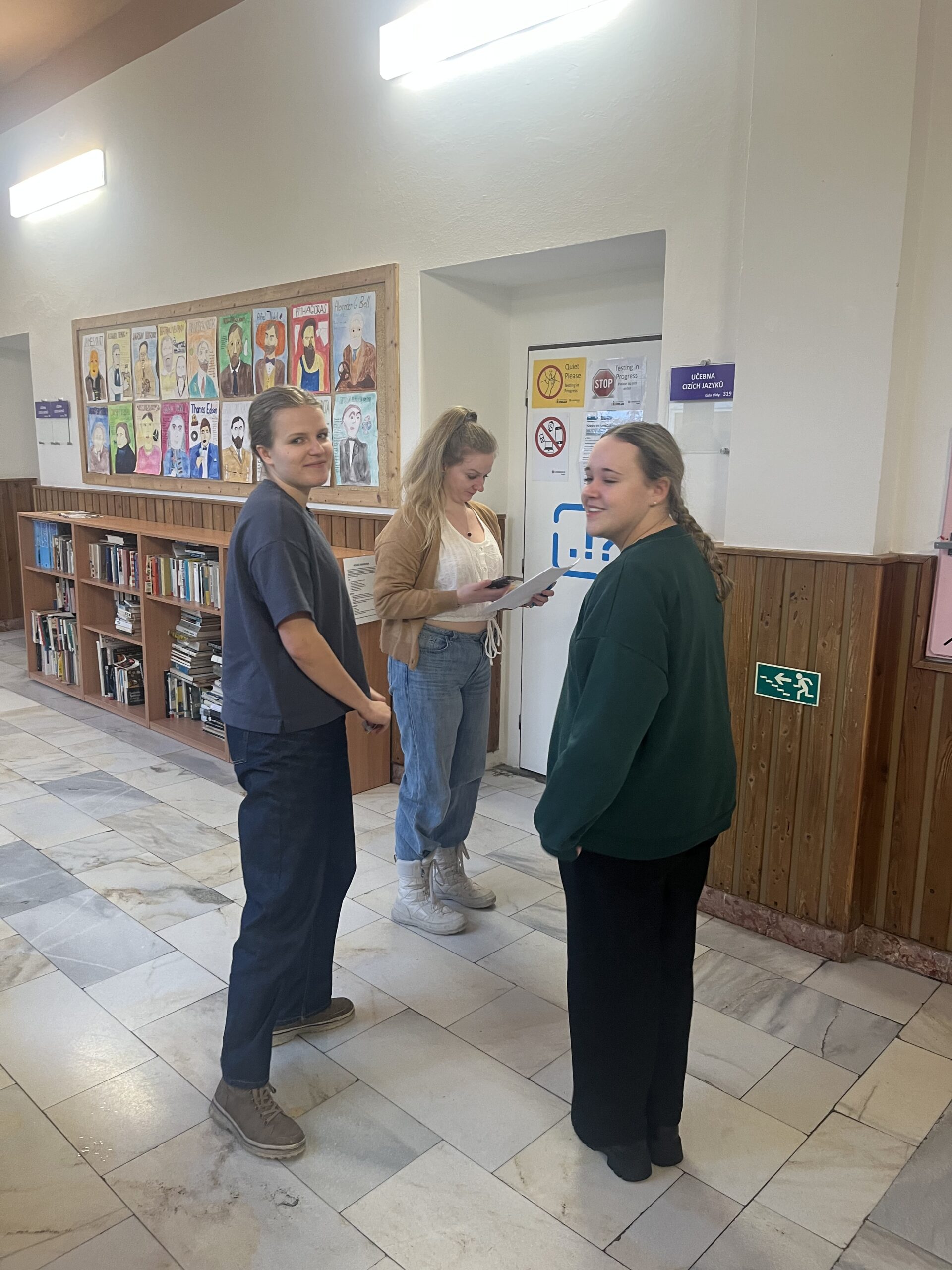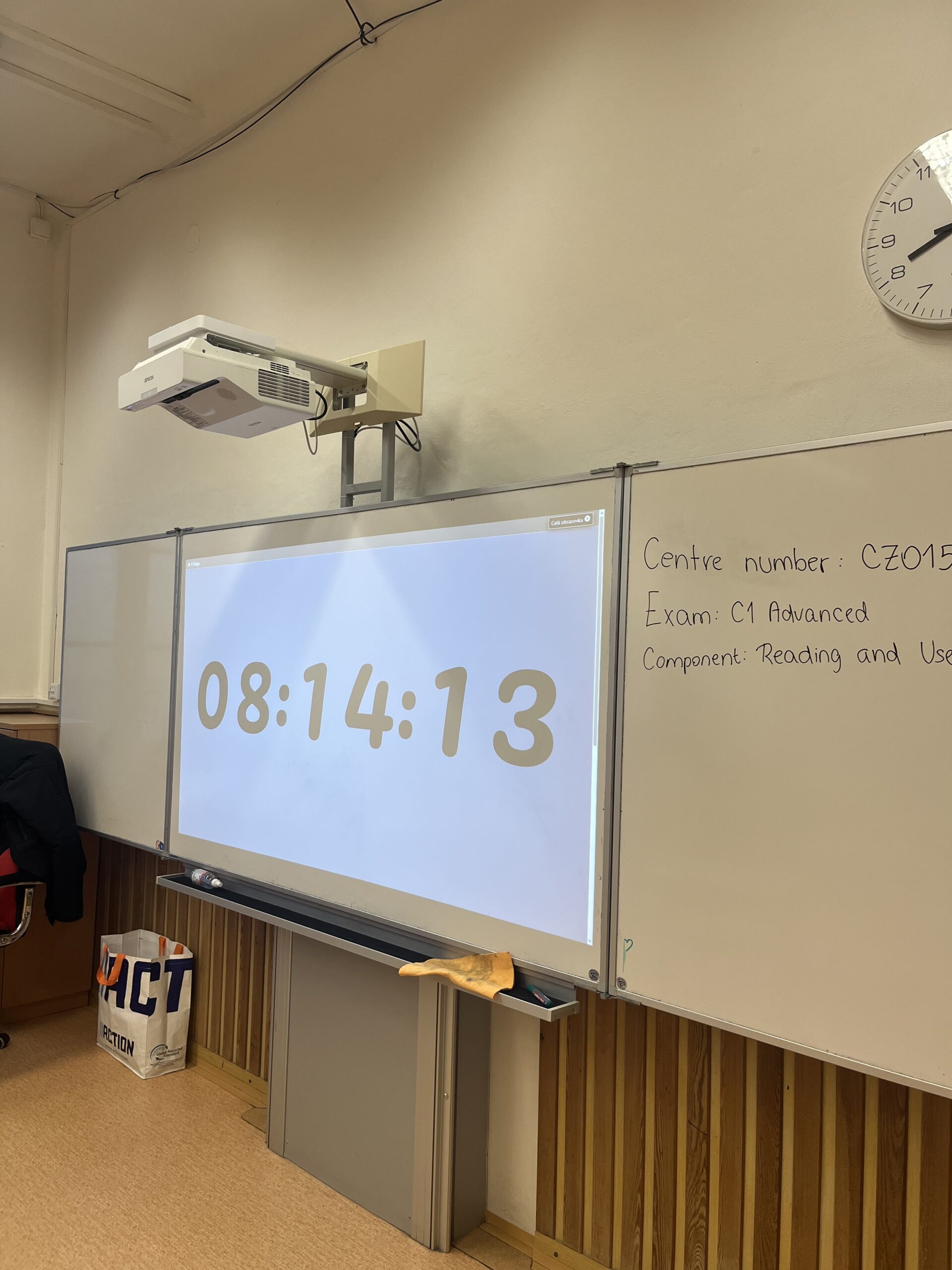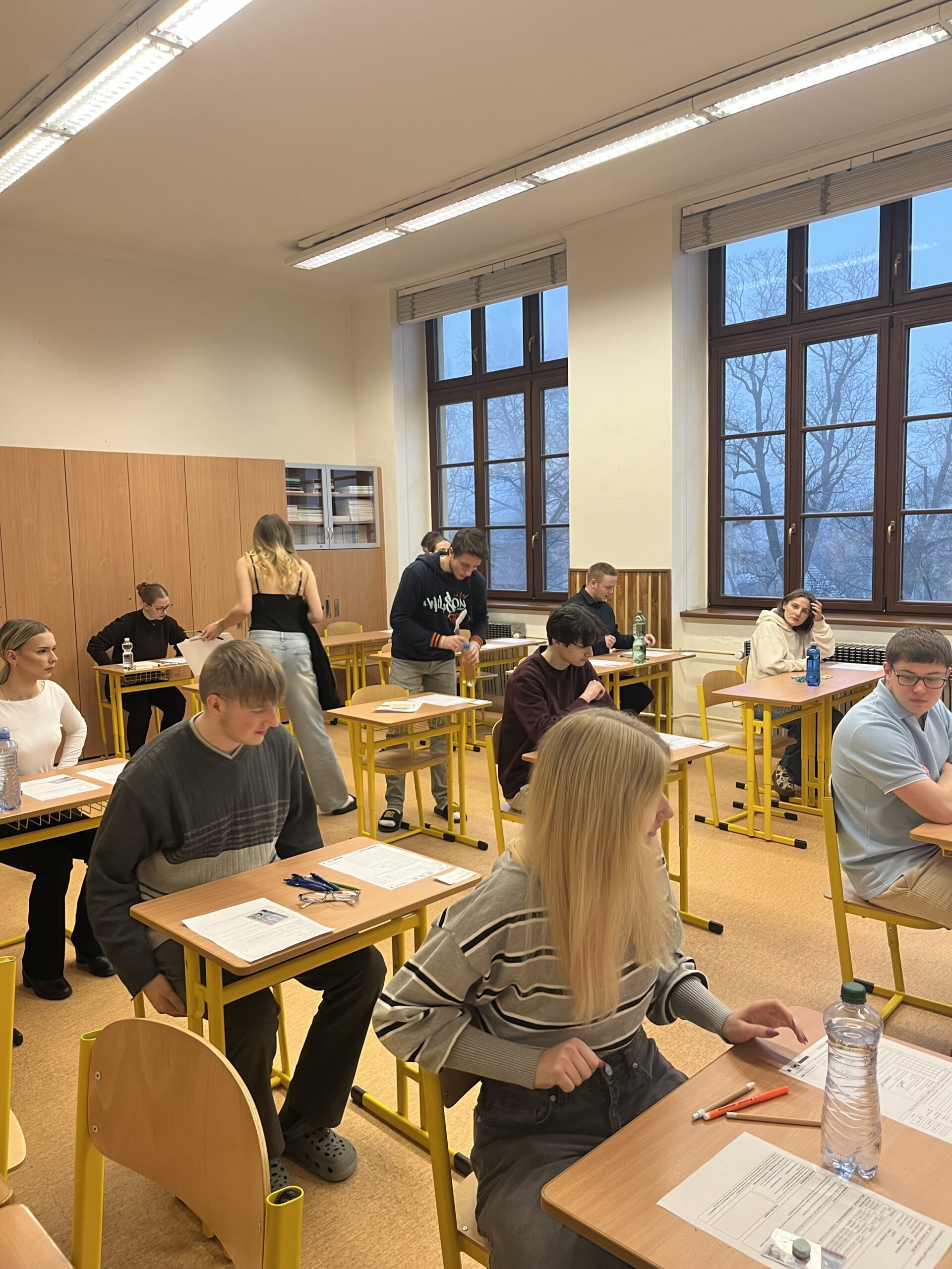 „Nejprve nás čekala část Reading and Use of English, která trvala dlouhou hodinu a půl. Po krátké pauze jsme se vrátili do zkušební místnosti, abychom napsali dvě slohové práce. První z nich byla essay, druhá již nabízela tři možnosti výběru: review, proposal a report. Tato část měla také hodinu a půl. Po další pauze na nás čekal Listening, který zabral cca 40 minut. Jako poslední proběhla část Speaking, při které spolu hovořily předem dané dvojice studentů pod dohledem dvou zkoušejících. Jelikož se testy posílají k vyhodnocení až do Cambridge v Anglii, výsledky budeme znát až na začátku března. Věříme ale, že po dlouhých měsících učení dosáhneme co nejlepších výsledků.“