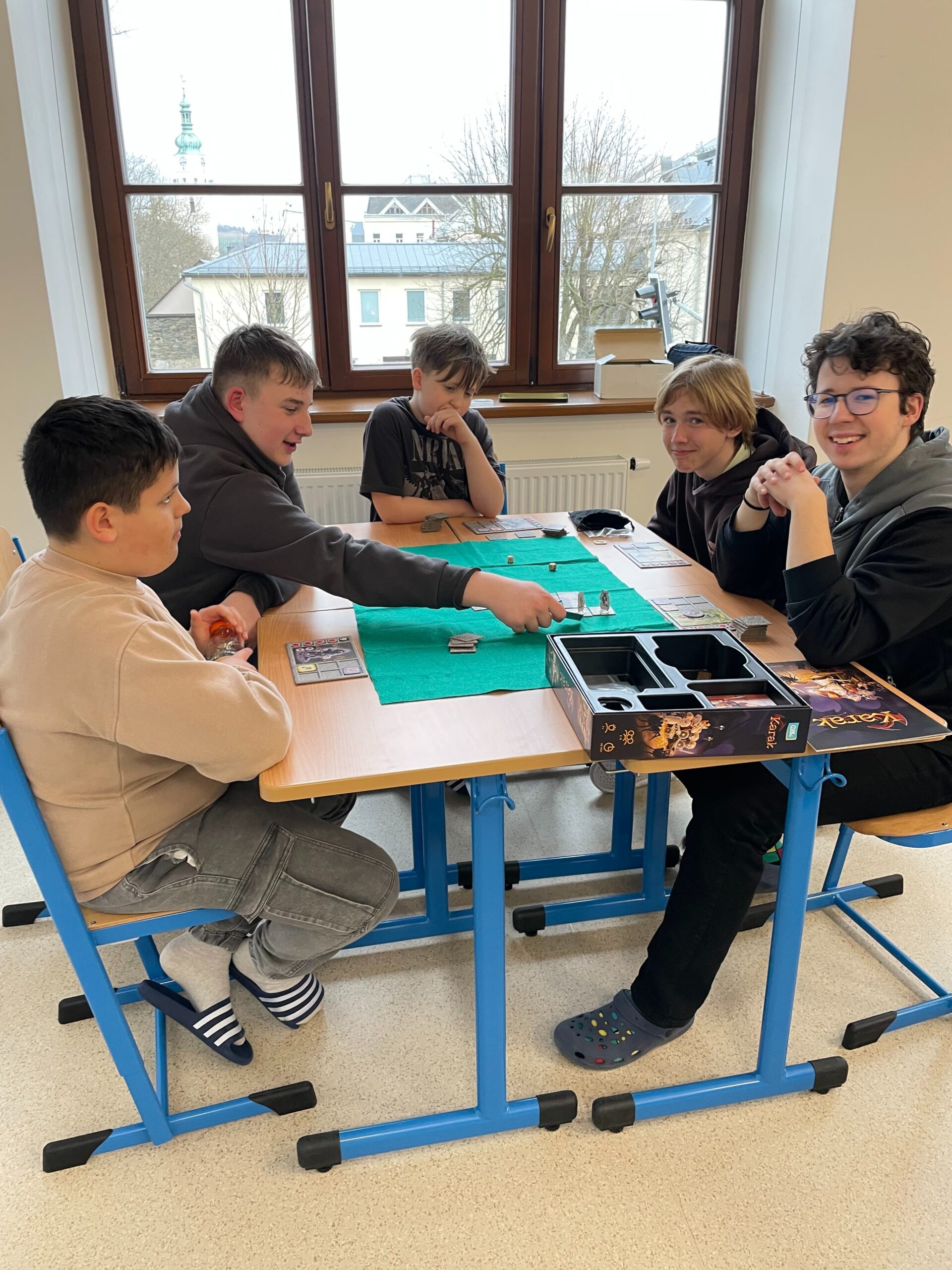 Příští termín deskových her je v plánu na dubnový čtvrtek, 16. 4. 2026. Zveme všechny žáky a učitele na tento termín a rádi přivítáme i další odvážné rodiče, kteří se chtějí zapojit do neformálního života školy.